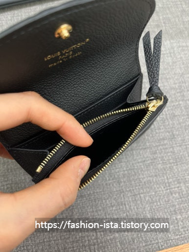 똑딱이를 열면 이렇게 지퍼와 루이비통 금장 각인이 있다.